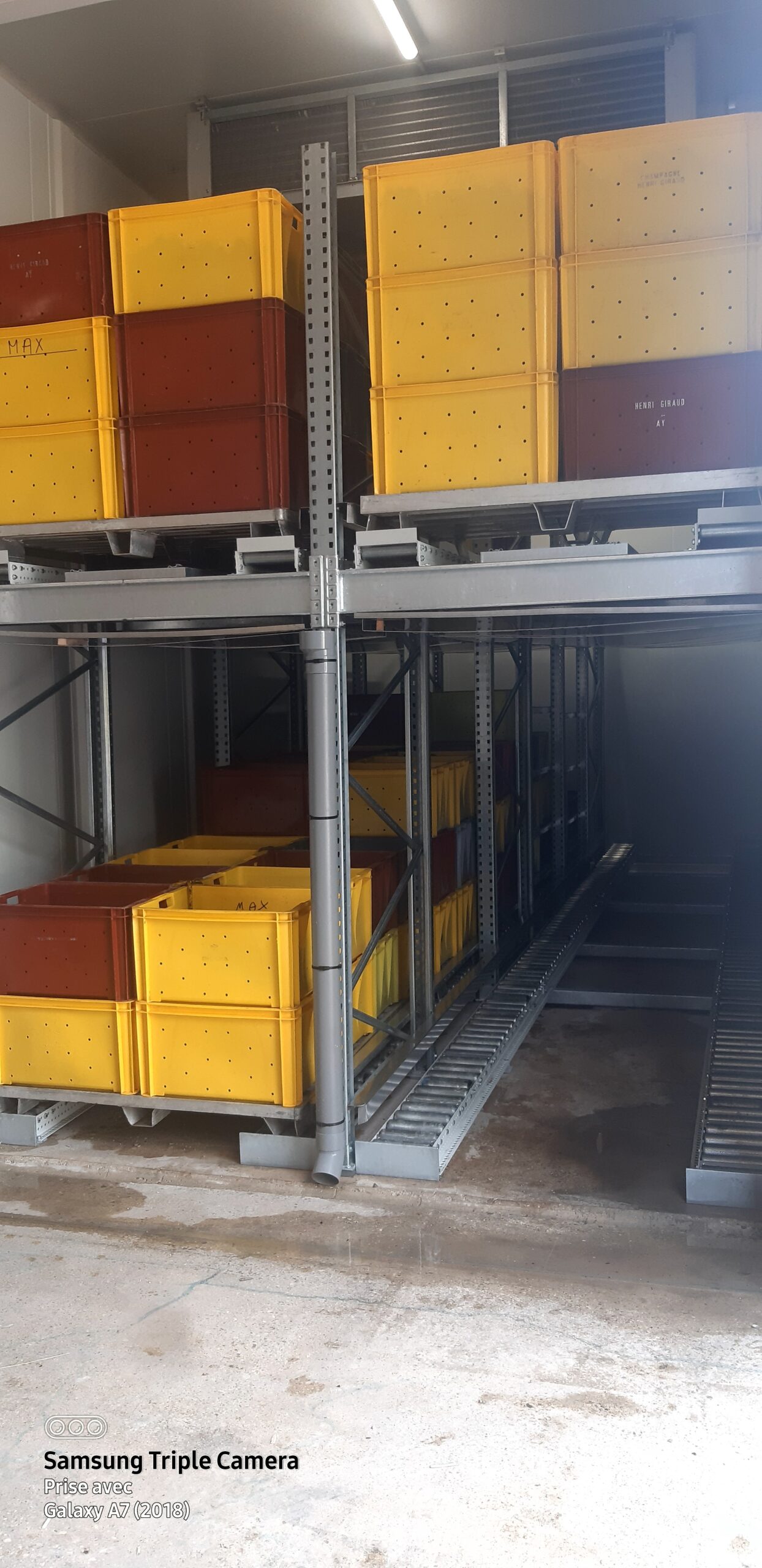 Au Champagne Henri Giraud à AY , cette illustre Maison de champagne,   régulièrement  primée pour ses vins ,ses innovations ou pour son chef de cave (élu meilleur chef de cave 2023) a profité de l’installation réalisée par GRAND EST RAYONNAGE pour les 2ème vendange consécutives .